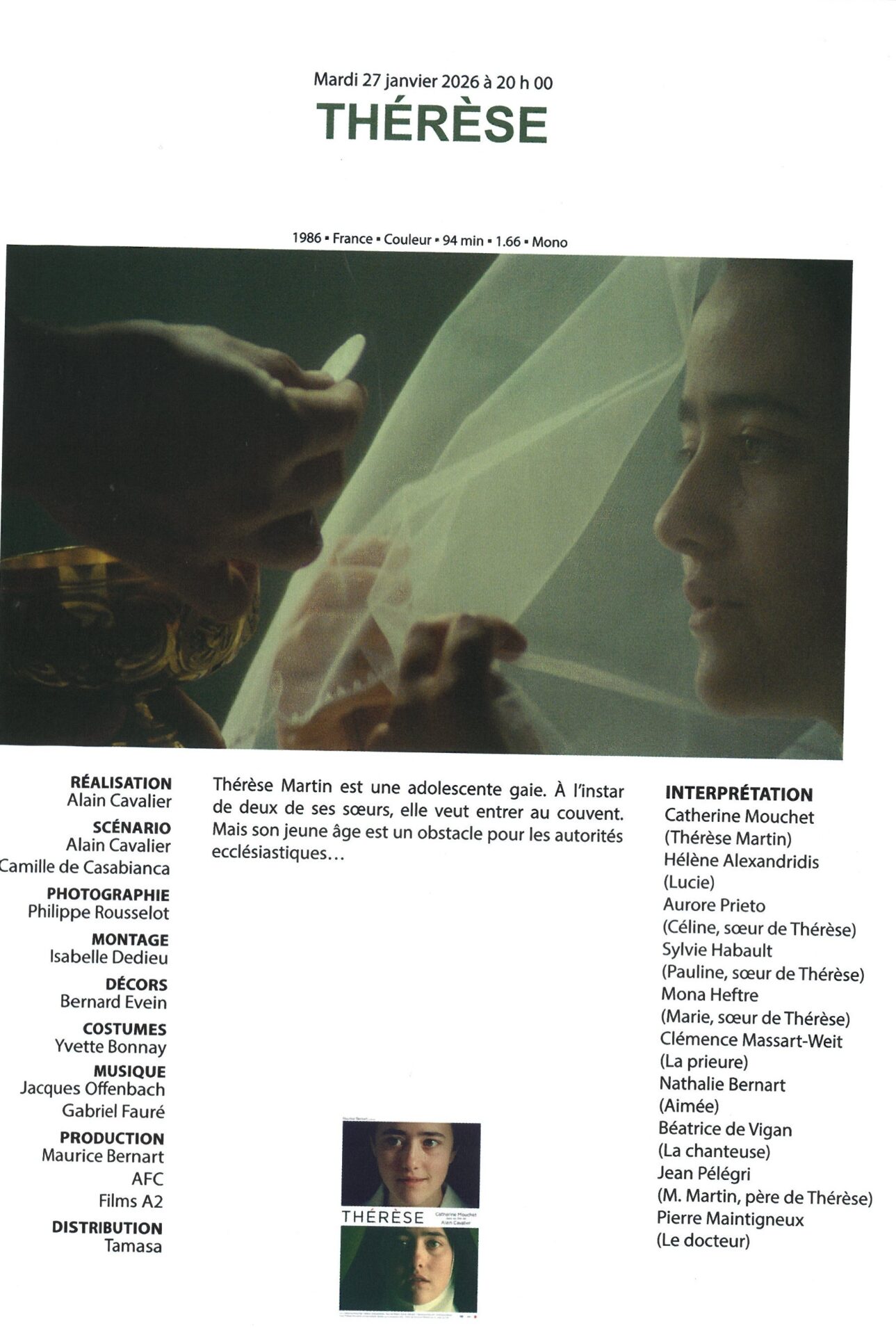 Le Cinéclub Meaux organise la projection du film Thérèse, film français réalisé par Alain Cavalier Mardi 27 janvier à 20h (+ d'infos)